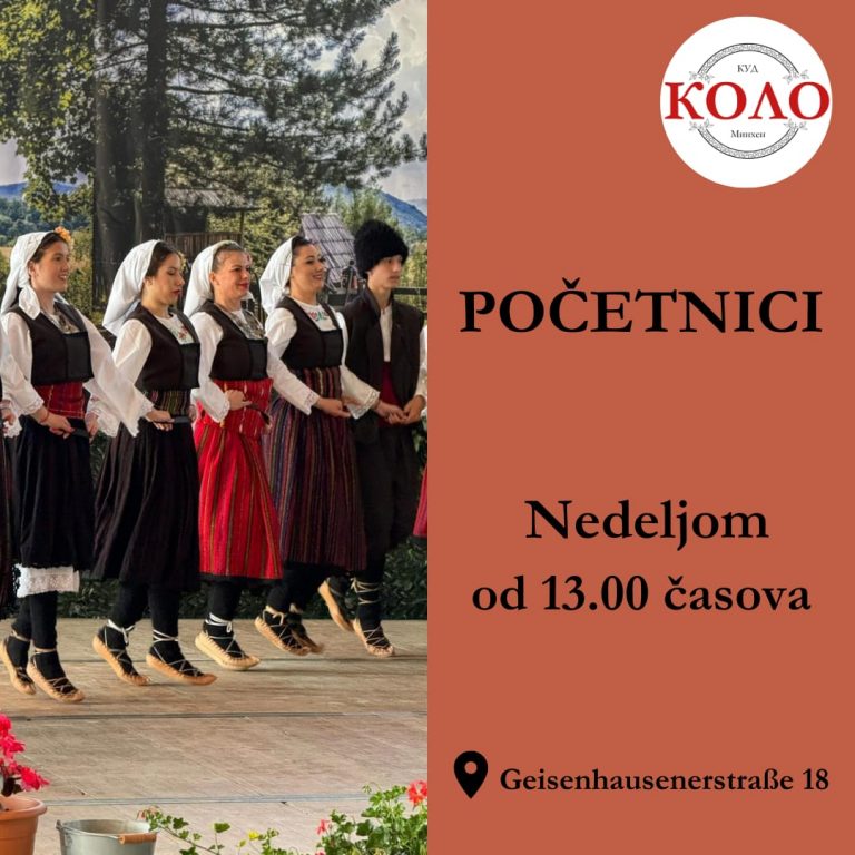 КУД КОЛО МИНХЕН ЧУВАМО ТРАДИЦИЈУ CUVAMO TRADICIJU KUD kolo minhen U Sklopu Kud-a Kolo funkcionise cetiri ansambla pocev od Decijeg preko pripremnog ,izvodjackog pa do rekreativnog sa velikim brojem koreografija ! ИЗАБЕРИ МУДРО ПОСТАНИ ЧЛАН Facebook Instagram Youtube Tiktok Kulturverein KUD Kolo e.V. München Johannes-Timm Straße 9 81373 München Impressum Datenschutz